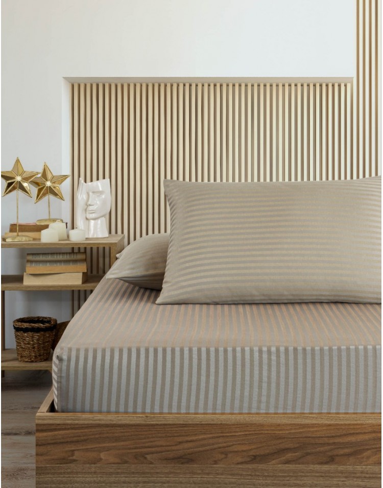 Çizgili Saten Yatak Çarşafı Lastikli 160x200 Yastık Kılıfı 50x70 Fitted Çift Kişilik Çarşaf Seti Kahverengi
